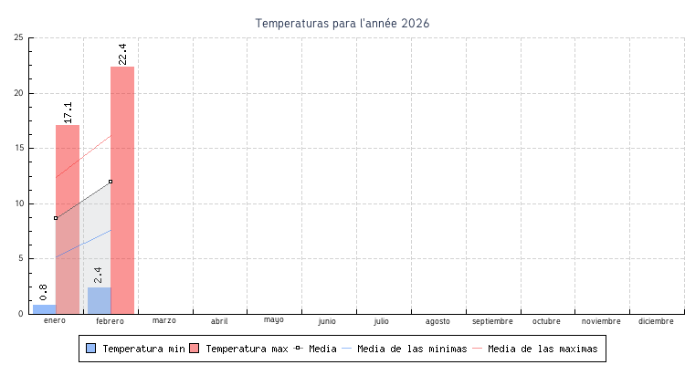 | Mes | Temperaturas min | Temperaturas max | Media mensual |